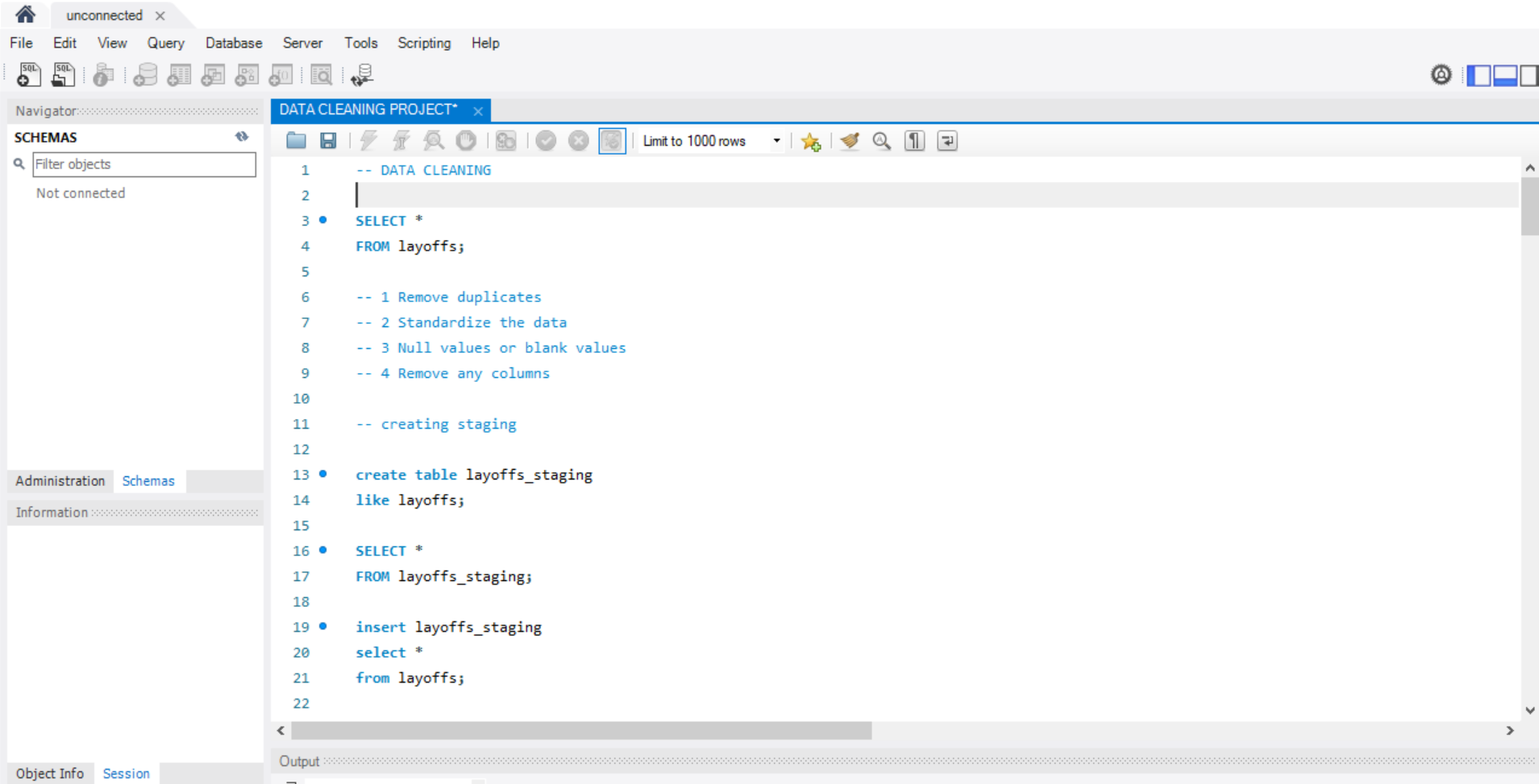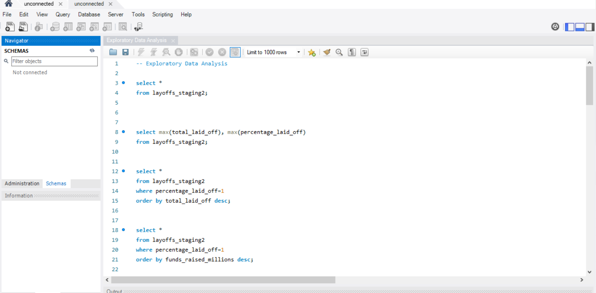 I analyzed a global tech layoffs dataset using SQL, focusing on data cleaning and exploratory analysis to uncover patterns across time, industries, and geographies.